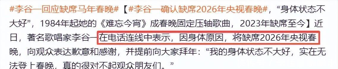 自1983年起,李谷一差不多每年都在除夕之夜和全国的观众们见面,已经成了习惯。她的歌声,再配上那张永不过时的脸庞,早就成了许多人心里难忘的春节回忆。直到她接连因病缺席春晚,众人才恍然:没想到她也会变老。